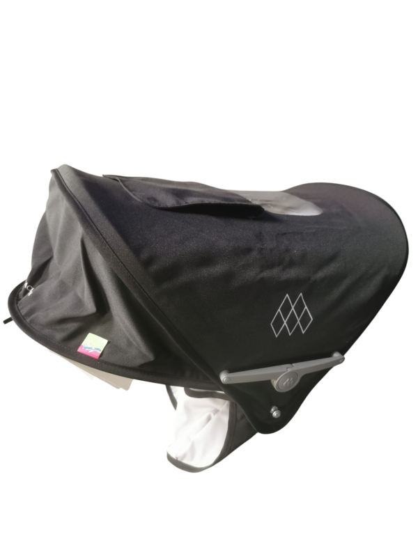 La Techno XLR étant le modèle le plus luxueux et le plus large de la gamme Maclaren, sa capote est la plus complète et la plus protectrice, conçue pour transformer la poussette en un véritable cocon tout-terrain.