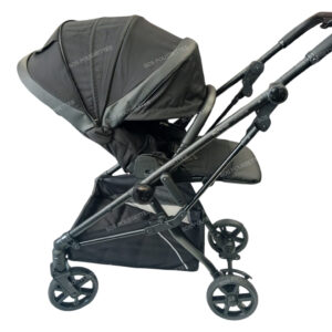 Les deux assises prennent ensuite le relais et sont indépendantes et inclinables, permettant d’adapter la position de chaque enfant (éveil ou sieste). Elles disposent de harnais de sécurité 5 points et de canopys extensibles pour une protection optimale. La poussette est équipée de roues avant pivotantes et de suspensions, garantissant une conduite fluide et agréable, même avec deux enfants. Son châssis robuste reste facile à manœuvrer, tandis que son pliage compact facilite le rangement. Le panier de rangement spacieux sous l’assise permet de transporter facilement toutes les affaires du quotidien.
