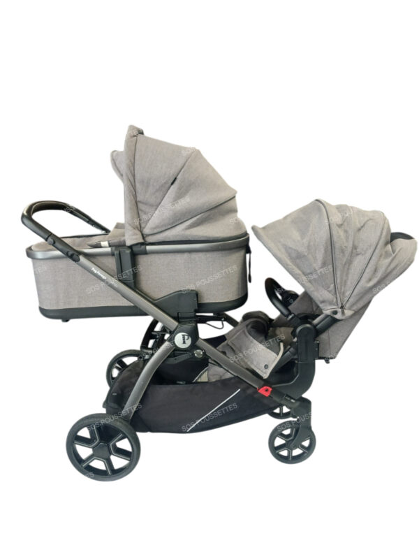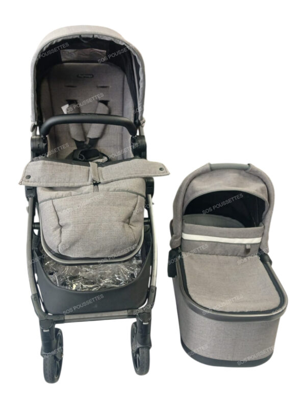 La Ypsi Duo Peg Perego est une poussette modulable comprenant un châssis, un siège (hamac) et une nacelle, permettant une utilisation dès la naissance jusqu’à environ 22 kg. Conçue pour les parents actifs, elle combine design moderne, praticité et grande fluidité de conduite. Pensée pour offrir confort et sécurité, la nacelle accueille le nouveau-né dans un espace allongé, confortable et protecteur, idéal pour les premiers mois. Elle dispose d’une capote couvrante et d’un intérieur adapté au sommeil de bébé.