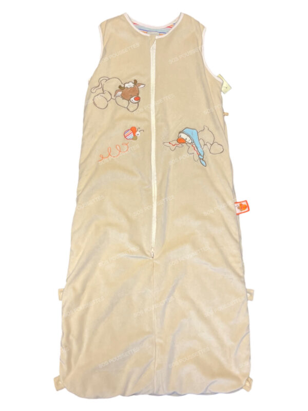 Gigoteuse vache beige, confortable et douce, adaptée aux enfants de 6 mois à 4 ans. Idéale pour des nuits paisibles et sécurisées.