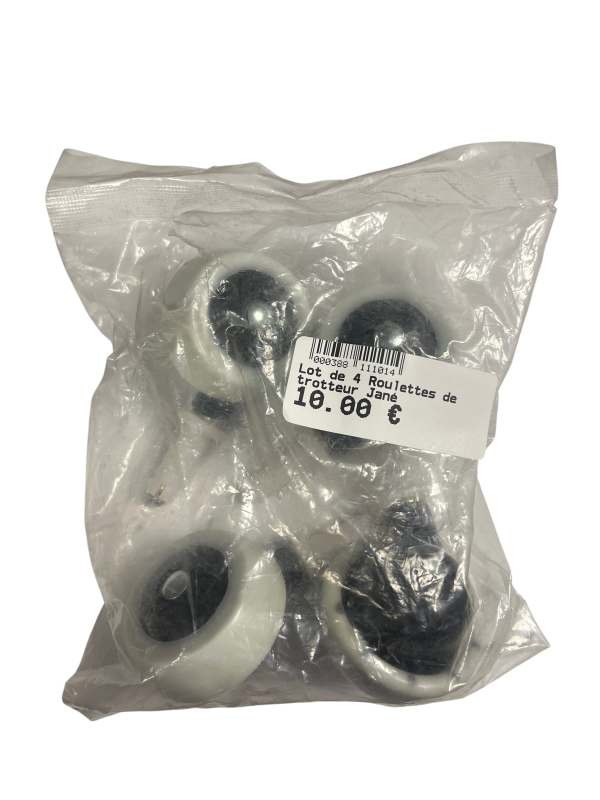 Lot de 4 roulettes d’origine Jané, conçues pour remplacer facilement les roues du trotteur de votre bébé. Assurent une bonne stabilité et une mobilité fluide pour un usage quotidien en toute sécurité.
