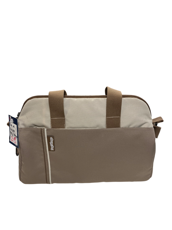 Sac à langer Peg Perego de couleur beige, pratique et élégant. Il offre un espace de rangement fonctionnel pour transporter facilement tout le nécessaire de bébé lors de vos déplacements.